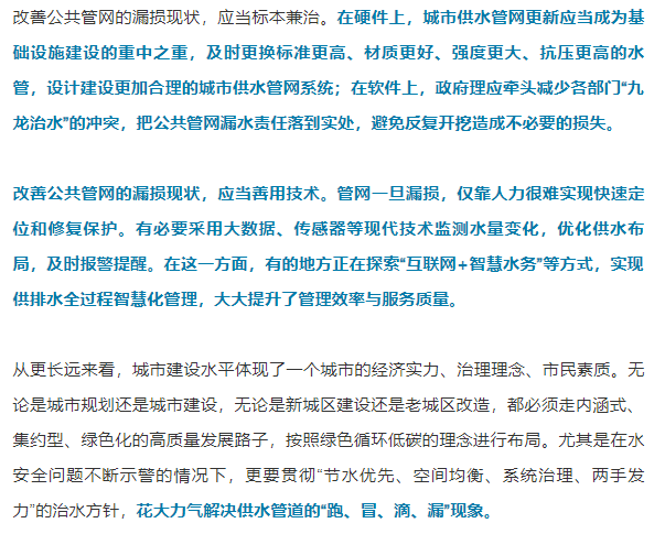 人民網(wǎng):花大力氣解決供水管道的“跑、冒、滴、漏”現(xiàn)象